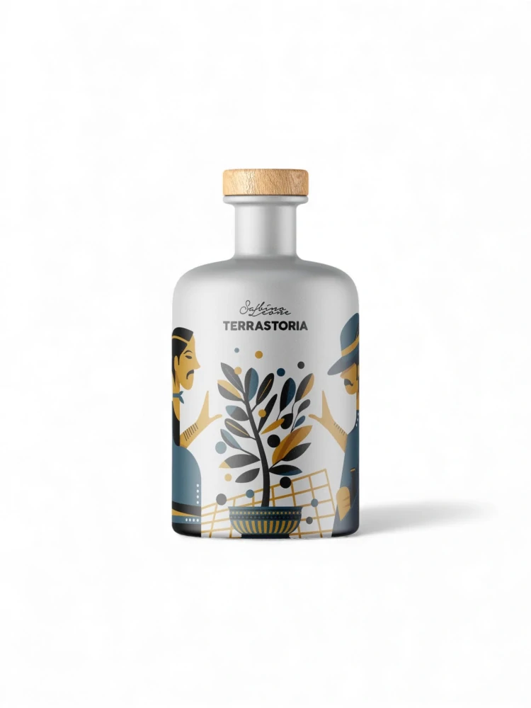 Tato krásná láhev ze srdce italské Apulie je naplněna špičkovým olivovým olejem z kultivaru Coratina.